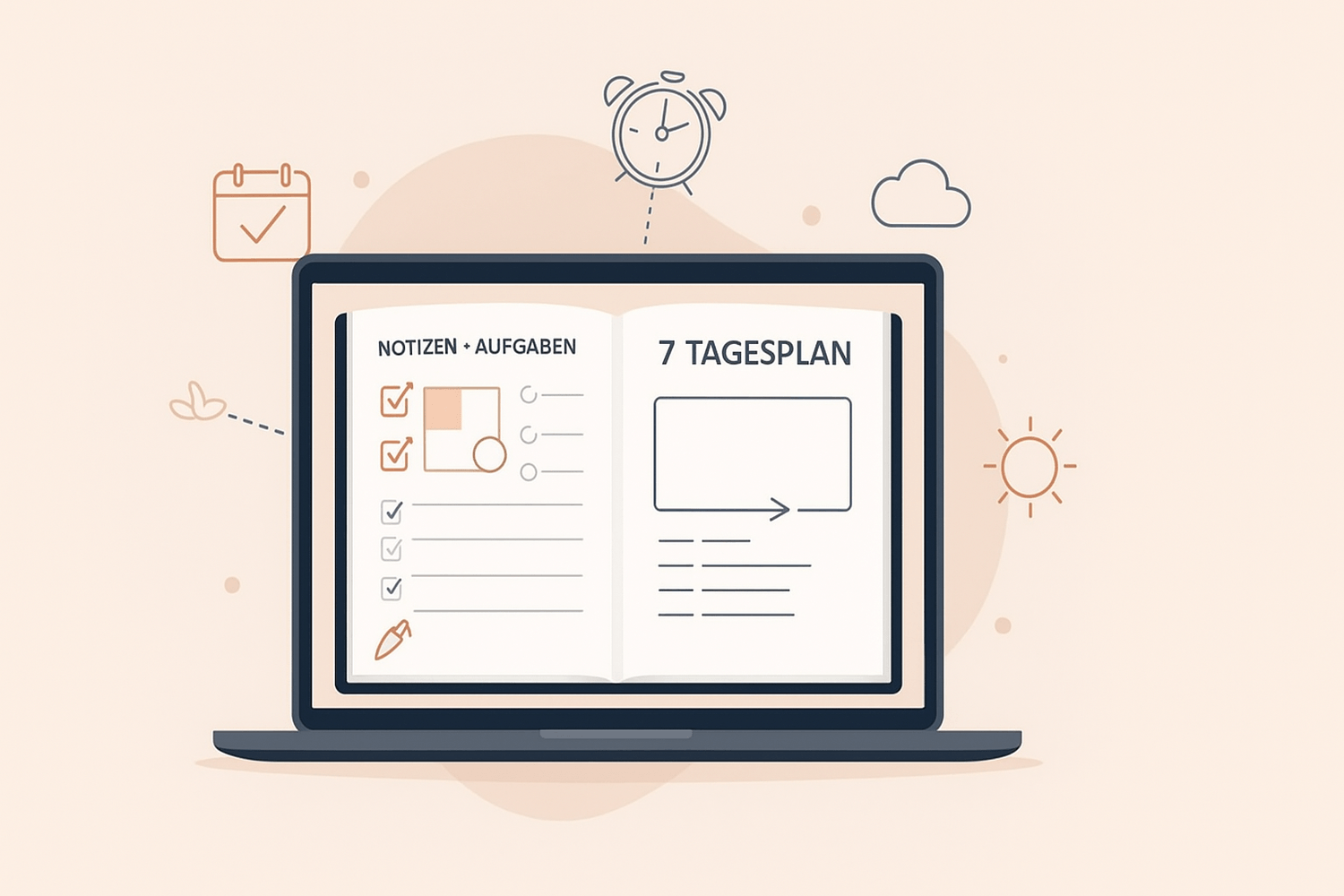 In 7 Tagen hast du ein fertiges digitales Produkt, das du sofort verkaufen kannst. Strukturiert. Klar. Übersichtlich.
